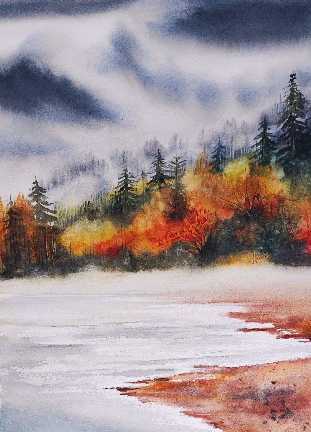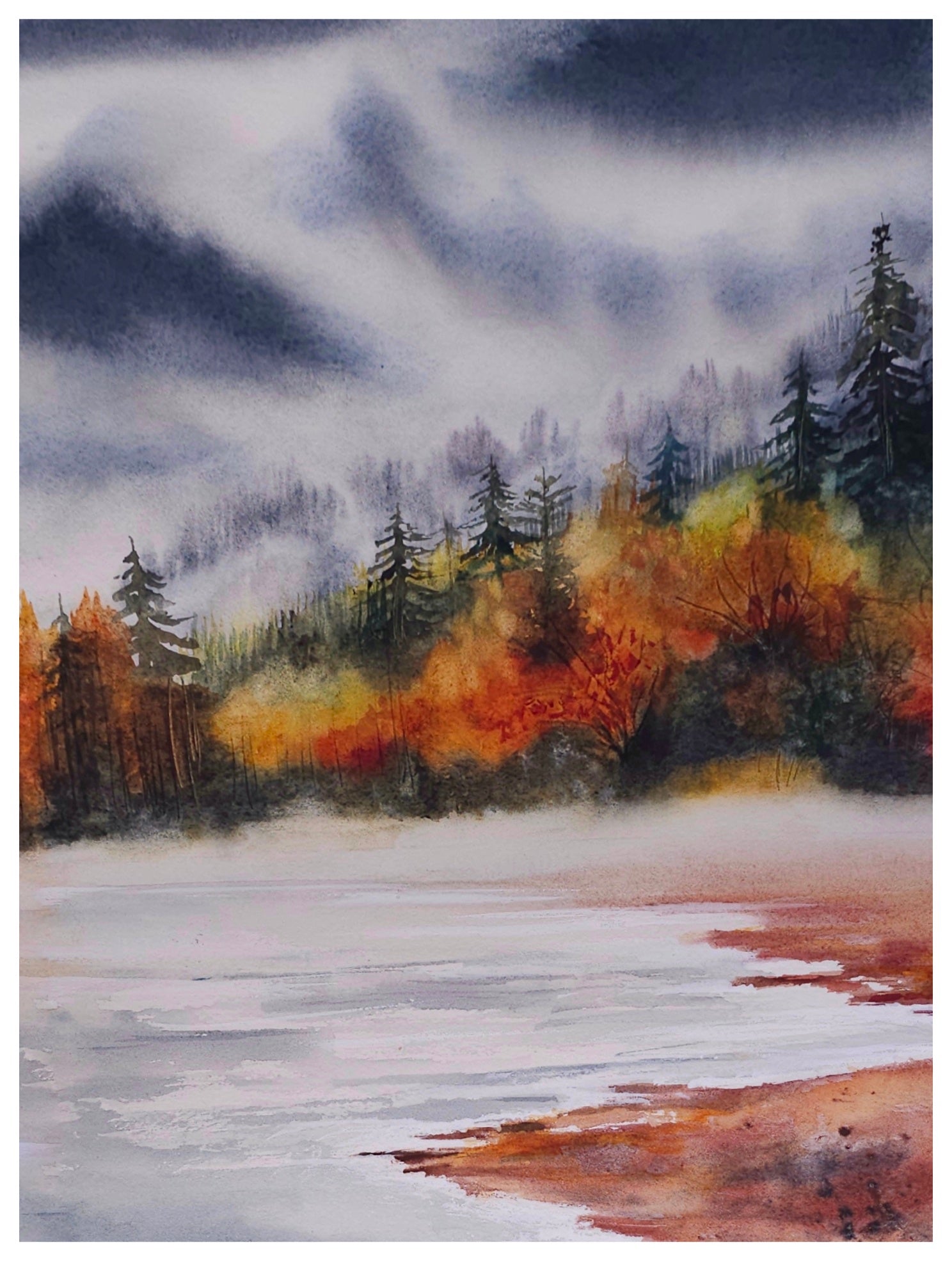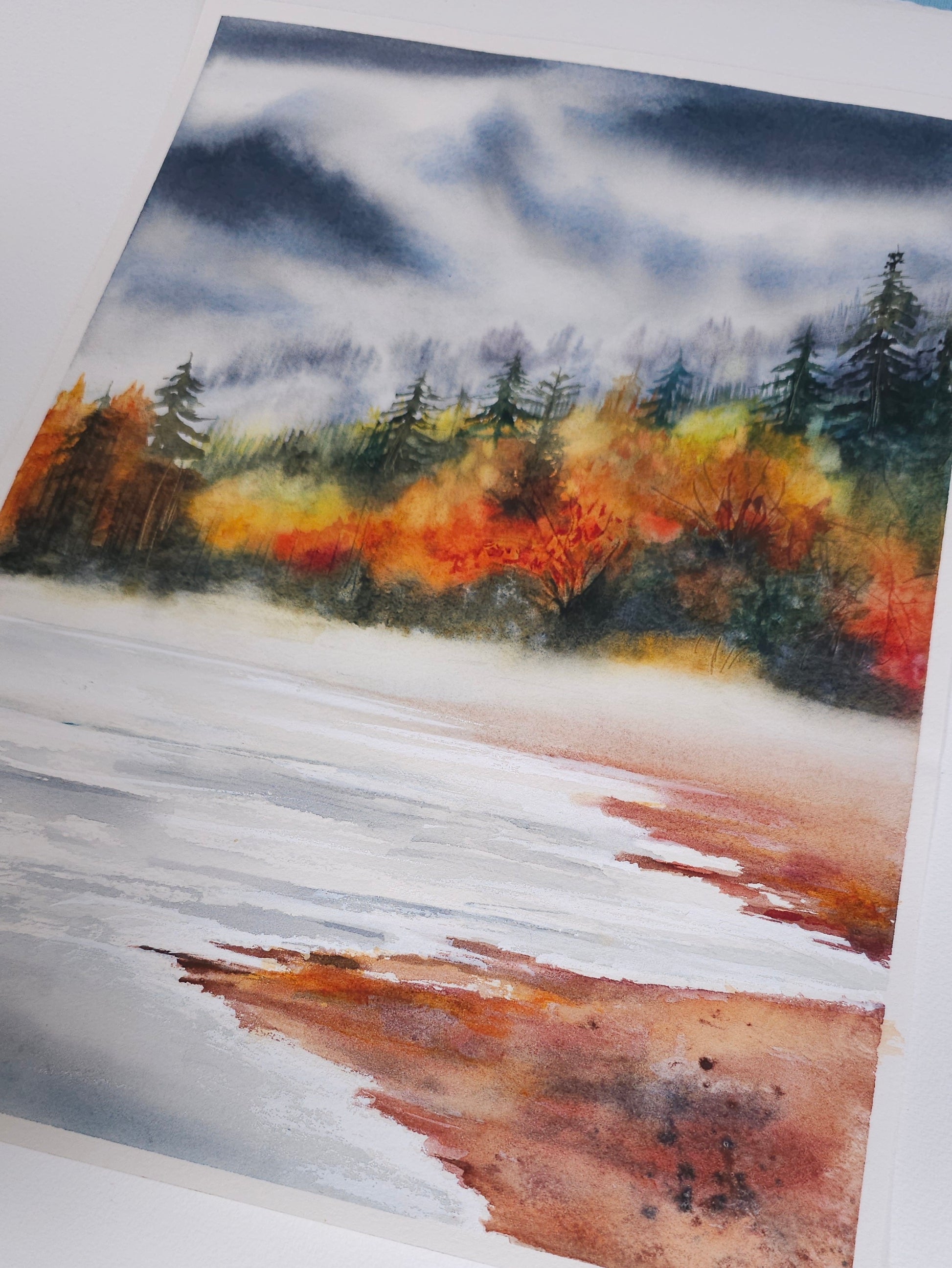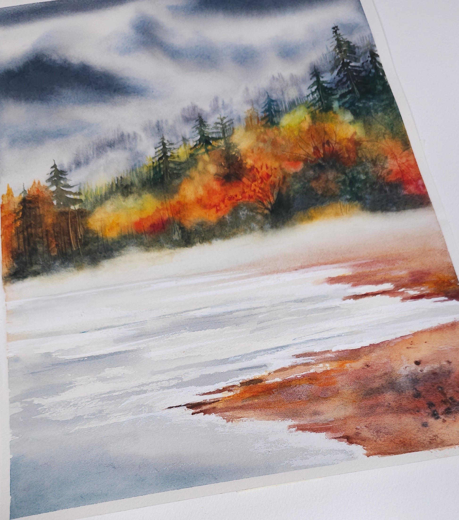 This original watercolor painting is carefully packaged and shipped to ensure safe delivery. A perfect addition for lovers of seasonal landscapes, nature-inspired art, and tranquil scenery.